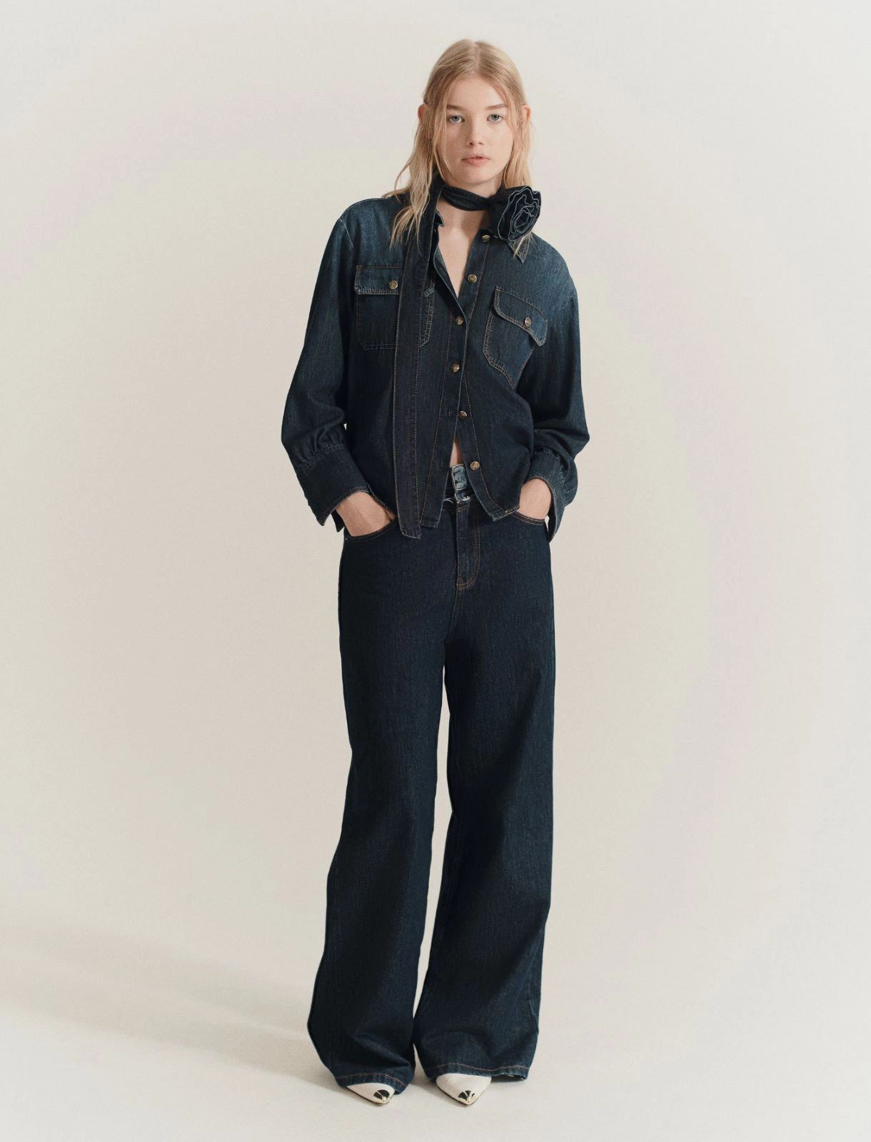 Τζιν πουκάμισο με λουλούδι