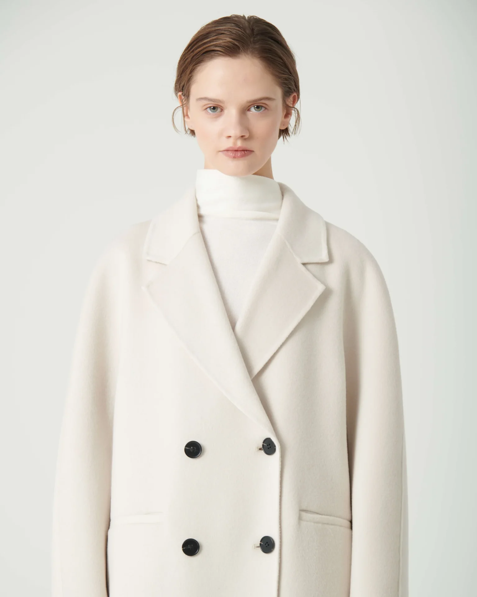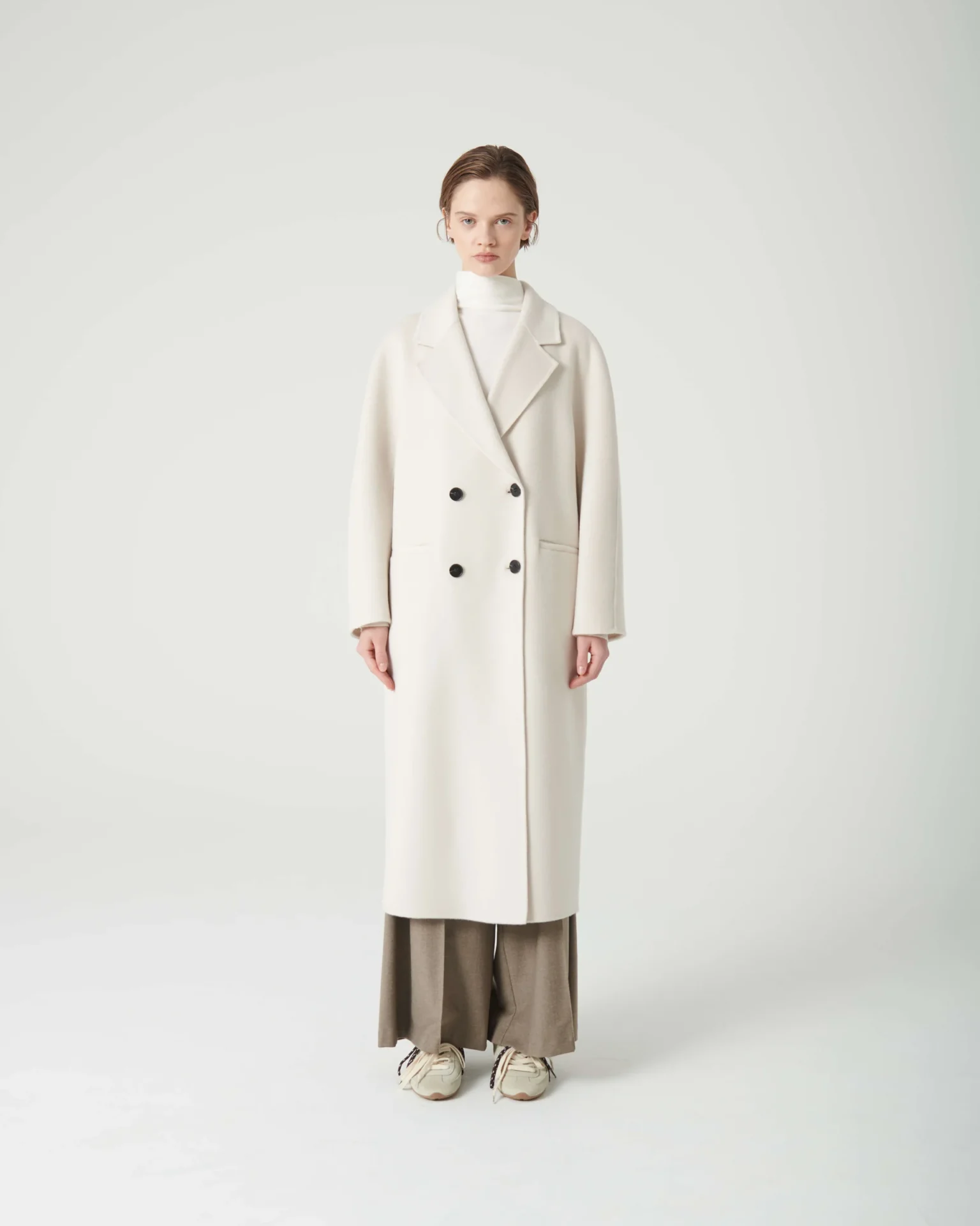Με ένα πολυτελές μείγμα μαλλιού και κασμίρ, αυτό το μακρύ παλτό διαθέτει κλασικό γιακά και πέτα, μακριά μανίκια σε στυλ κιμονό και σταυρωτό κλείσιμο με κουμπιά και ορατά κουμπιά. Οι τσέπες με ρέλι ολοκληρώνουν το σχέδιο.