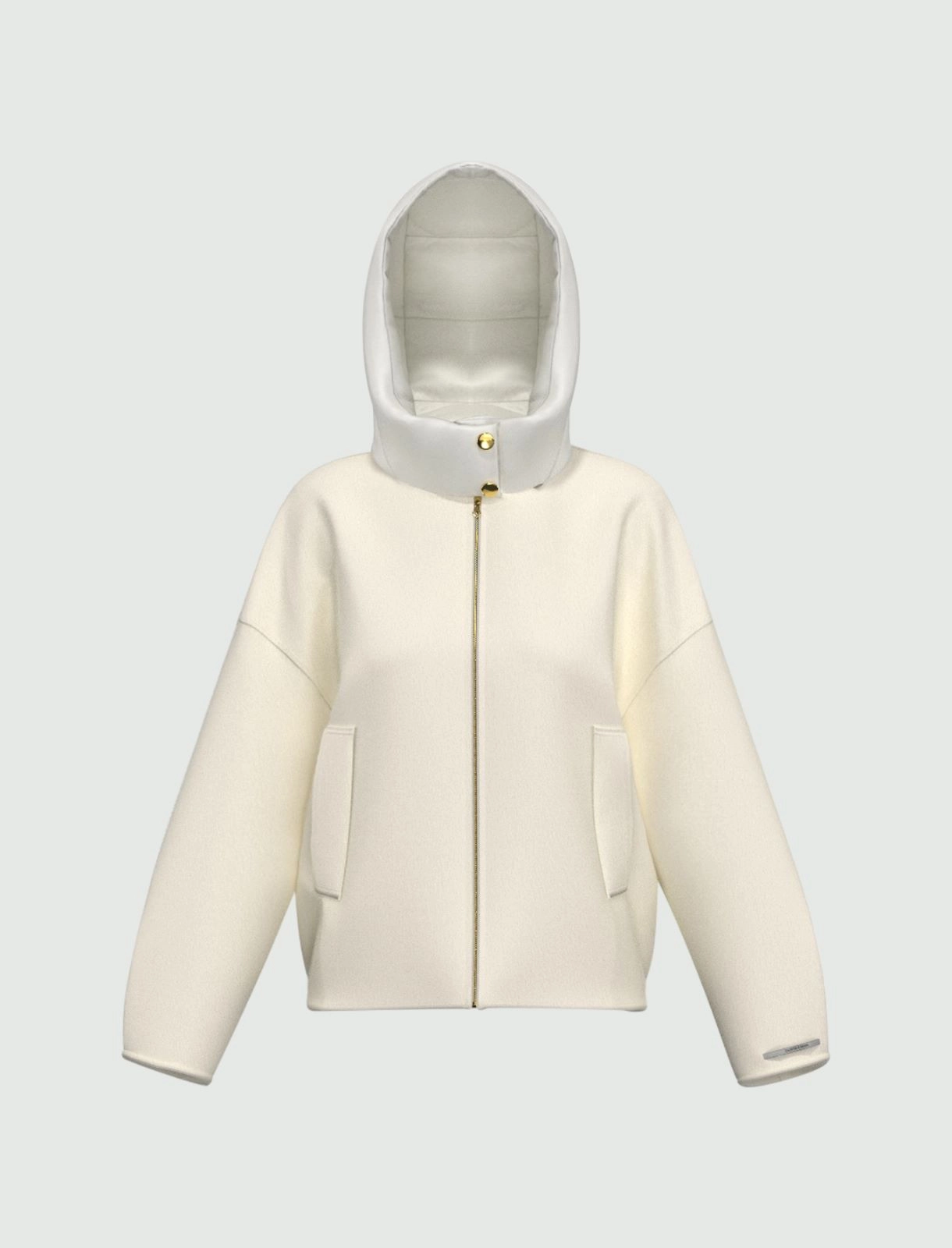 Μπουφάν από ελαστικό ύφασμα διπλής όψης με τεχνικές λεπτομέρειες υφάσματος