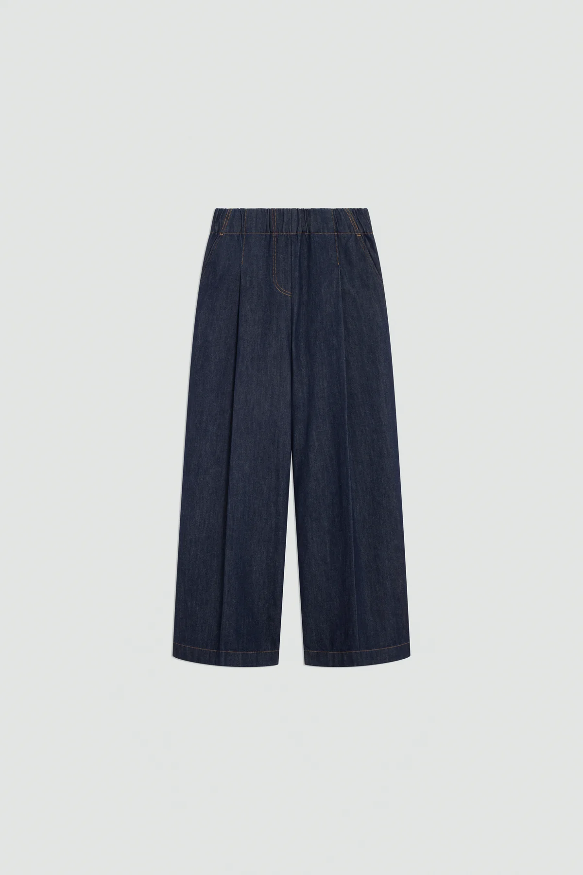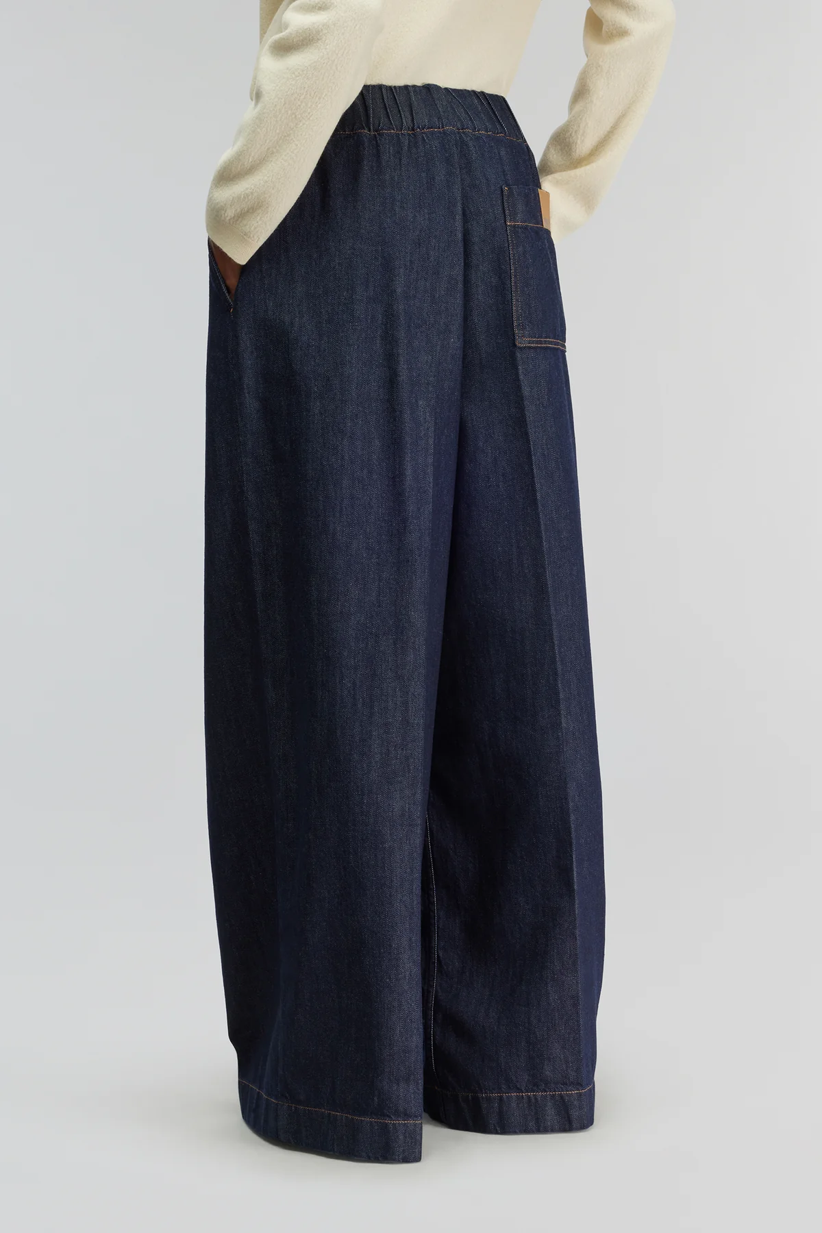 Τζιν από βαμβακερό τζιν. Σχεδιασμός με φαρδιά μπατζάκια, λάστιχο στη μέση και δύο γαλλικές τσέπες.