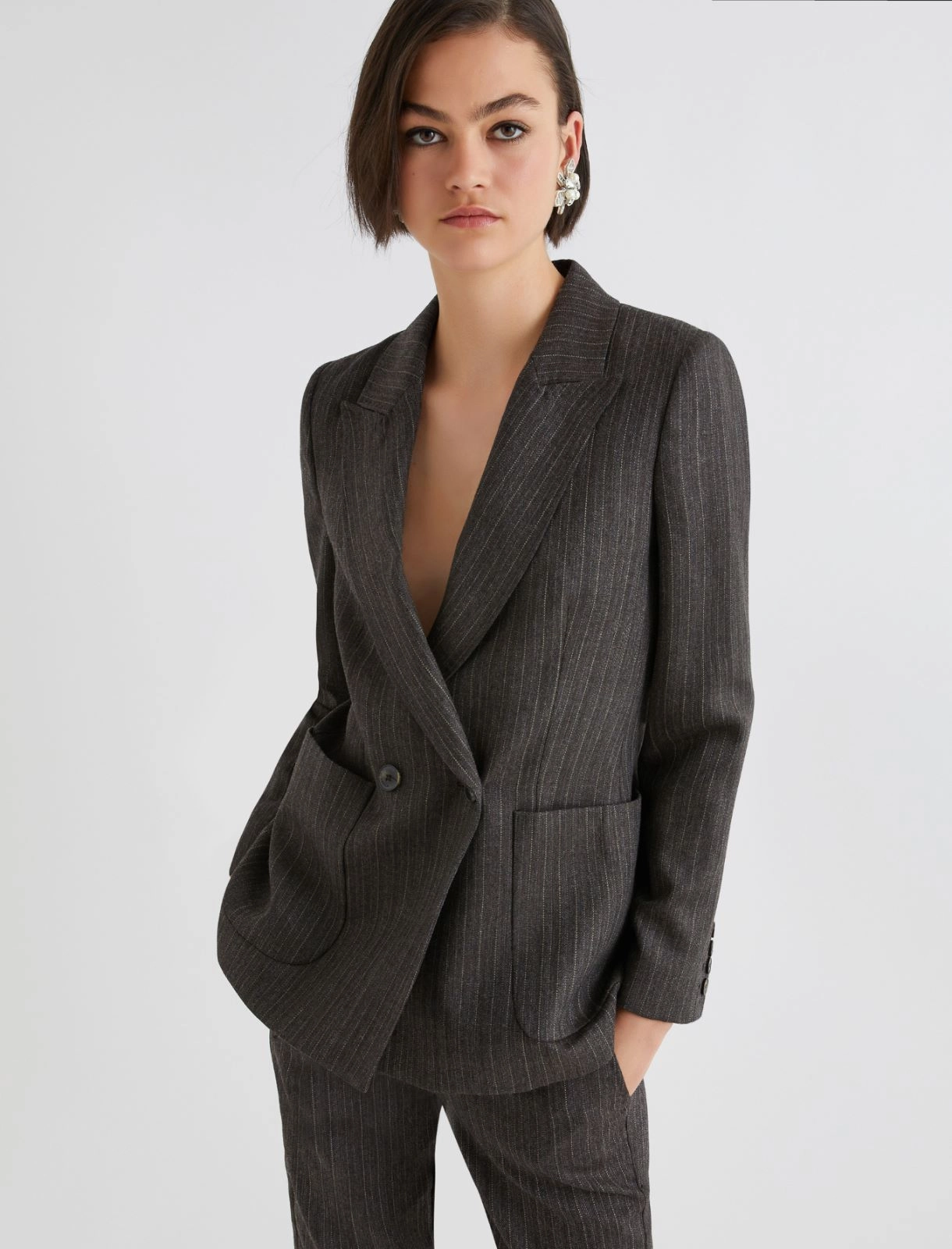 Ψάχνετε για μια κομψή εμφάνιση για επαγγελματικό στυλ με μια κομψή πινελιά; Αυτό το σακάκι με το σταυρωτό τελείωμα αποπνέει άνεση και είναι κατασκευασμένο από απαλό ύφασμα από καθαρό μαλλί για μια νότα κομψότητας.
