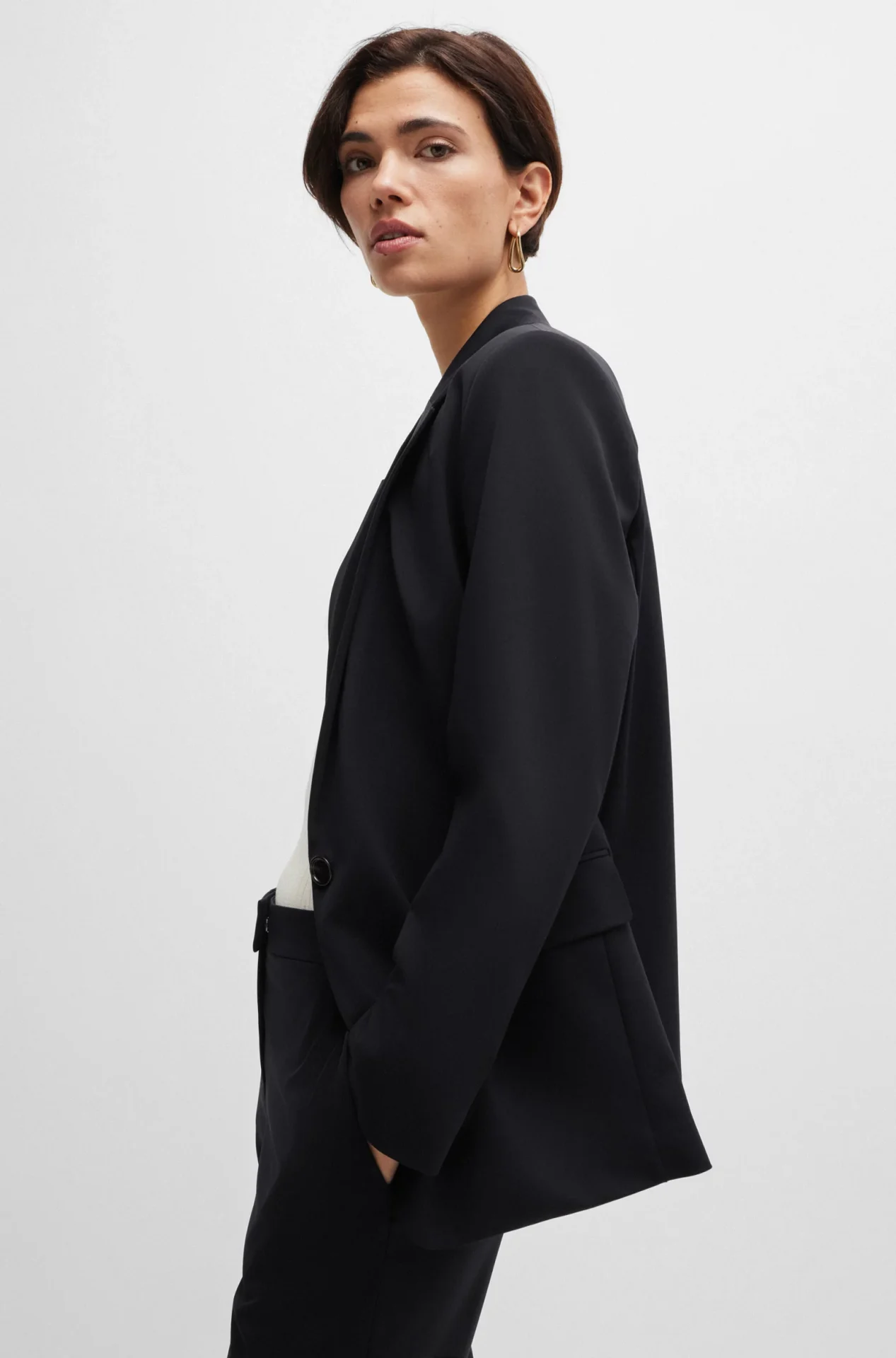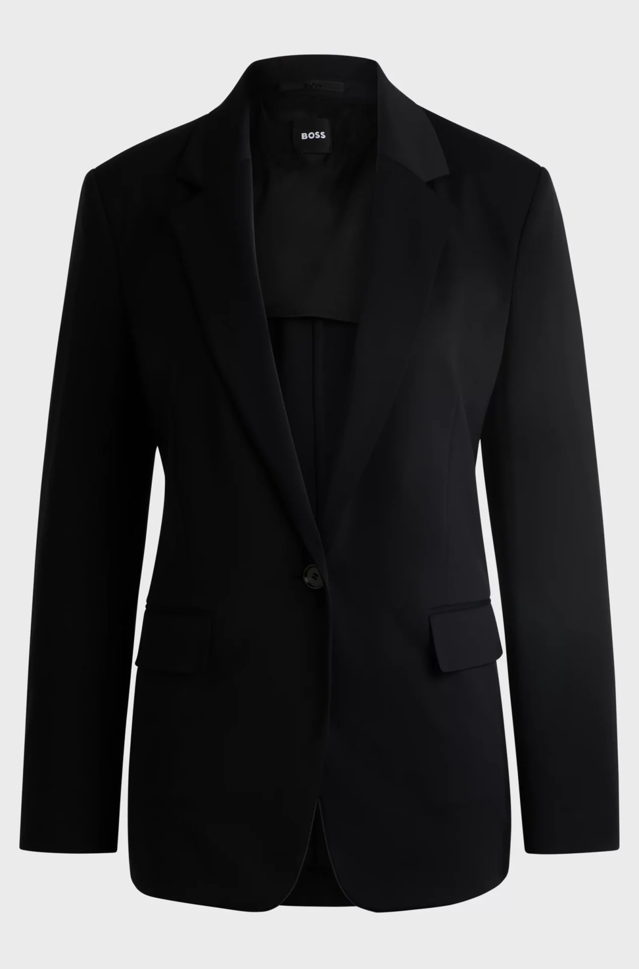 Σακάκι της BOSS Womenswear. Προσαρμοσμένο σε μια χαλαρή εφαρμογή, αυτό το κομμάτι με μερική επένδυση είναι κατασκευασμένο σε ελαστικό ζέρσεϊ ανθεκτικό στις πτυχές.